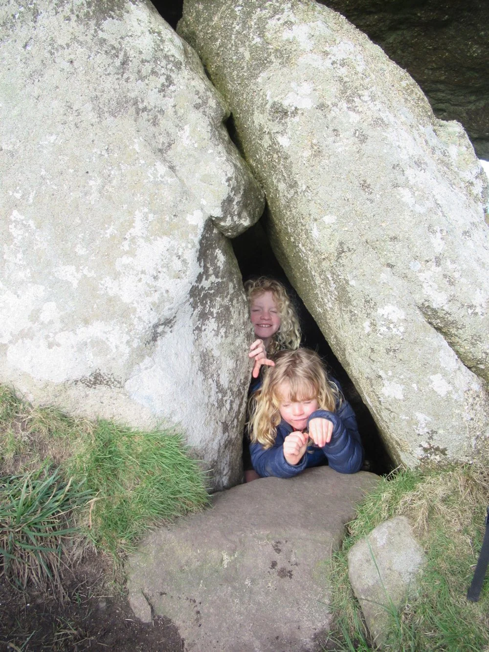 My boys in Chun Quoit Cornwall. It felt like being in the womb in there and the entrance looks surprisingly like a vagina!